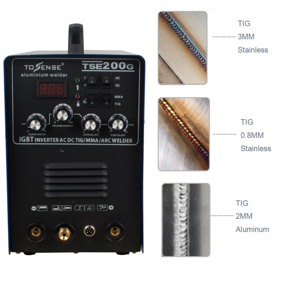 .Images of Aluminum Welder 220V TIG MMA ARC Stick 200A Tosense Welder AC DC IGBT Inverter Welding Machine With Welding Consumables TSE200G