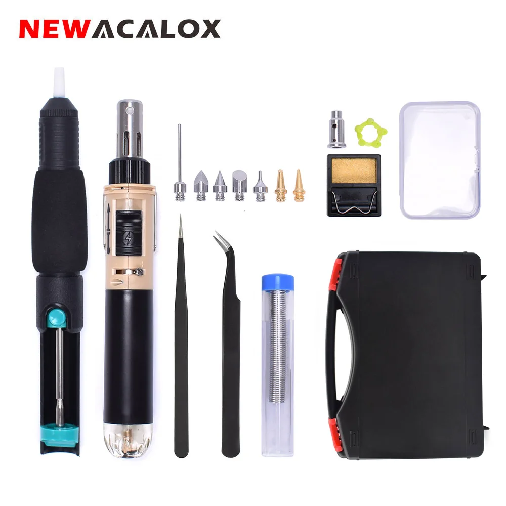 Best Price for NEWACALOX Butane Gas Soldering Iron Kit Cordless Self-Ignition Welding Gun Torch Welding Repair Soldering Pyrography Tool Set